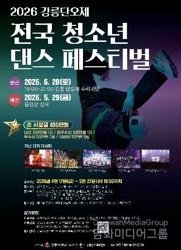 시민행정신문 기자 | 강릉시 청소년수련관은 오는 6월 20일 오후 7시 강릉단오제 수리마당에서 개최되는 ‘2026 강릉단오제 전국 청소년 댄스 페스티벌’의 참가팀을 17일부터 5월 27일까지 모집한다.