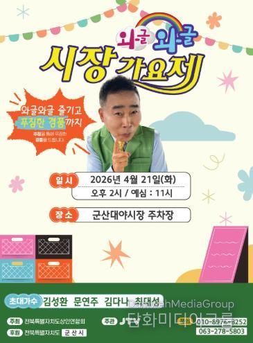 시민행정신문 강갑수 기자 | 전통시장과 지역 상권에 활력을 더하는 ‘와글와글 시장가요제’가 군산 대야전통시장에서 열린다.