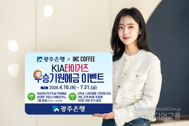 시민행정신문 강갑수 기자 | 광주은행은 4월 16일부터 7월 31일까지 인크커피(INC COFFEE)와 협업해 비대면 가입 고객을 대상으로 다양한 혜택을 제공하는 ‘광주은행X인크커피 KIA타이거즈우승기원예금 이벤트’를 실시한다고 밝혔다.