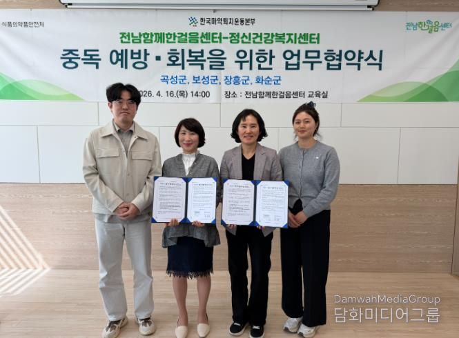 시민행정신문 강갑수 기자 | 화순군은 지난 16일 화순군정신건강복지센터가 전남함께한걸음센터와 지역사회 마약류 및 약물 오남용 예방과 회복 지원 강화를 위한 업무협약(MOU)을 체결했다고 밝혔다.