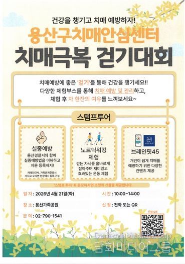 행사 참여는 용산구치매안심센터 전화나 포스터 내 정보무늬(QR코드)를 통해 신청할 수 있다. 행사 당일 현장 등록도 가능하다.