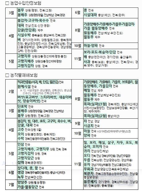 벼는 지난해 4개 시·군을 대상으로 운영했고, 올해 16개 시·군에 신규 도입하여 총 20개 시·군에서 확대 운영된다. 아울러, 봄배추·봄무는 평창 등 주산지 중심으로 시범 운영에 착수하는 한편, 봄감자·고구마·옥수수는 전국으로 확대하여 운영한다.