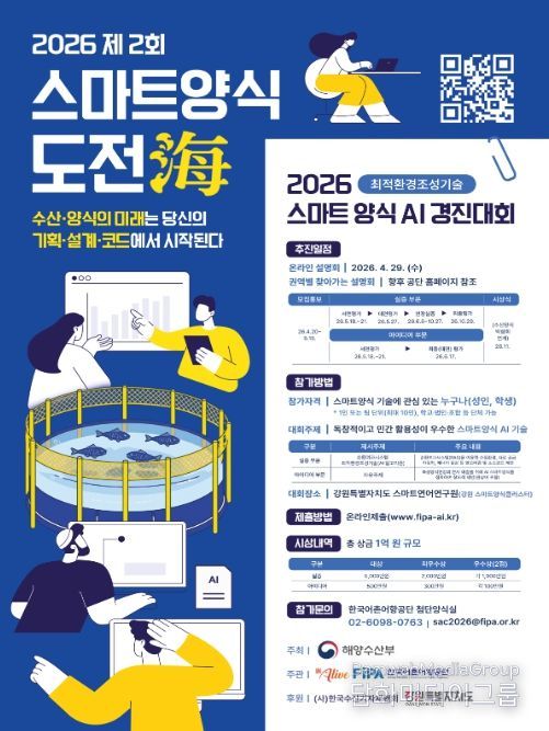 시민행정신문 이세훈 기자 | 해양수산부와 한국어촌어항공단(이사장 홍종욱)은 4월 20일부터 5월 15일까지 ‘제2회 스마트양식 도전해(海) 경진대회’의 공모를 실시한다고 밝혔다.