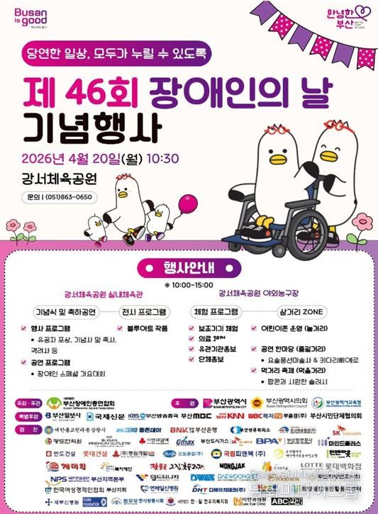 시민행정신문 기자 | 부산시는 오늘(20일) 오전 10시 30분, 강서체육공원 실내체육관에서 장애인에 대한 이해를 높이고 장애인과 비장애인이 함께 공감하는 장을 마련하기 위해 '제46회 장애인의 날 기념행사'를 개최한다고 밝혔다.