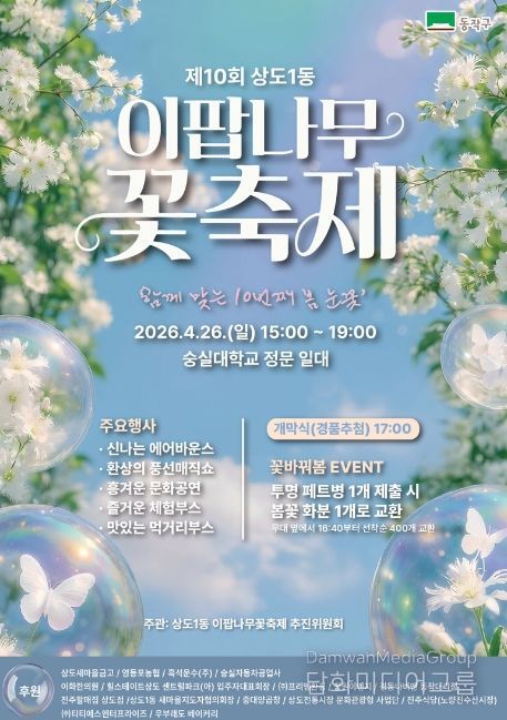 시민행정신문 이존영 기자 | 동작구는 오는 26일 숭실대학교 정문 일대(상도로 369)에서 ‘제10회 이팝나무 꽃 축제’를 개최한다고 밝혔다.