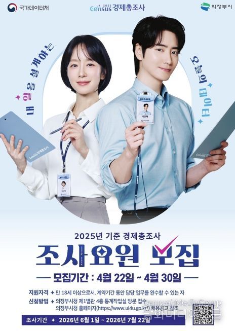 시민행정신문 강갑수 기자 | 의정부시는 6월 1일부터 실시되는 ‘2025년 기준 경제총조사’의 원활한 추진을 위해 조사요원 77명을 모집한다.