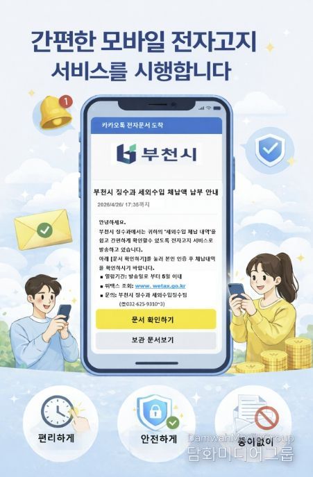 부천시 징수과장은 “모바일 전자고지 도입으로 고지서 전달의 정확성과 납부 편의가 높아질 것으로 본다”며 “앞으로도 시민 중심의 납세 서비스를 지속 확대하겠다”고 말했다.