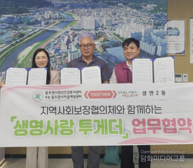 시민행정신문 강갑수 기자 | 동두천시정신건강복지센터 부설 자살예방센터는 ‘생명사랑 투게더’사업 추진을 위해 지난 17일, 생연2동 행정복지센터 및 생연2동 지역사회보장협의체와 업무협약을 체결했다.