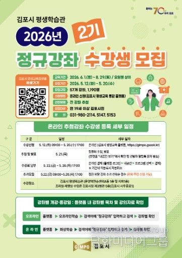 시민행정신문 기자 | 김포시가 시민의 평생학습 참여 기회를 확대하고 변화하는 사회 환경에 대응할 수 있는 역량 강화를 위해 ‘2026년 2기 평생교육 정규강좌’ 수강생을 모집한다고 밝혔다.