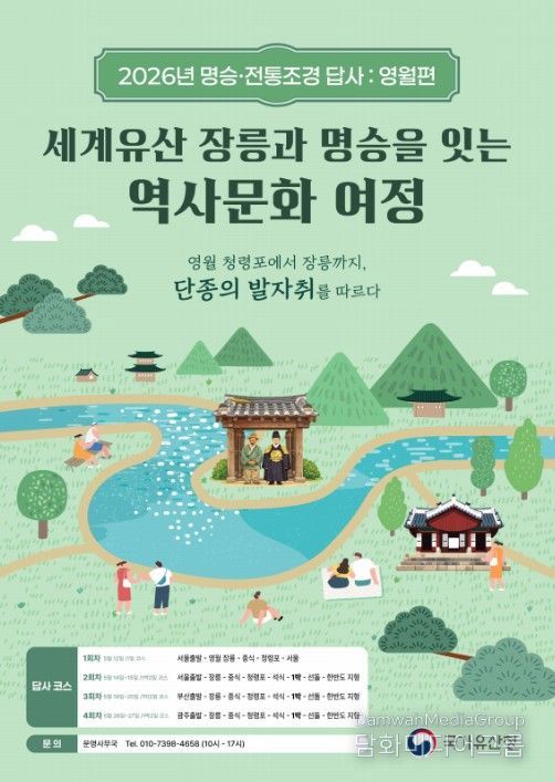 시민행정신문 이존영 기자 | 국가유산청은 5월 한 달간 총 5회(일반 회차 4회, 특별 회차 1회)에 걸쳐 영화 ‘왕과 사는 남자’의 배경이 된 강원도 영월의 국가유산을 깊이 있게 이해할 수 있는 '2026년 명승 및 전통조경 답사 프로그램'을 운영한다.