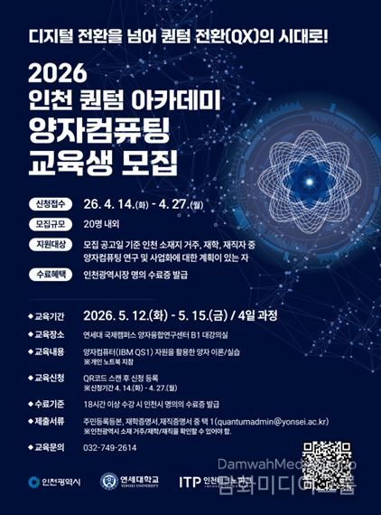 시는 연세대학교와 협력해 ‘2026 인천 퀀텀 아카데미’의 교육생을 모집한다.