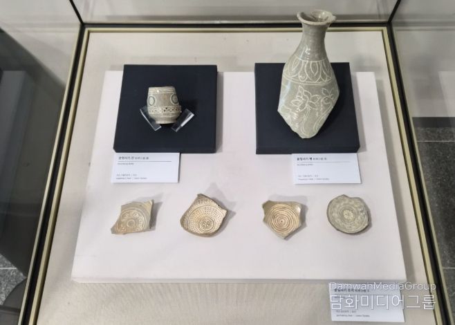 분청사기 잔과 병 등에 새겨진 다양한 문양과 조형미를 한눈에 살펴볼 수 있다.
