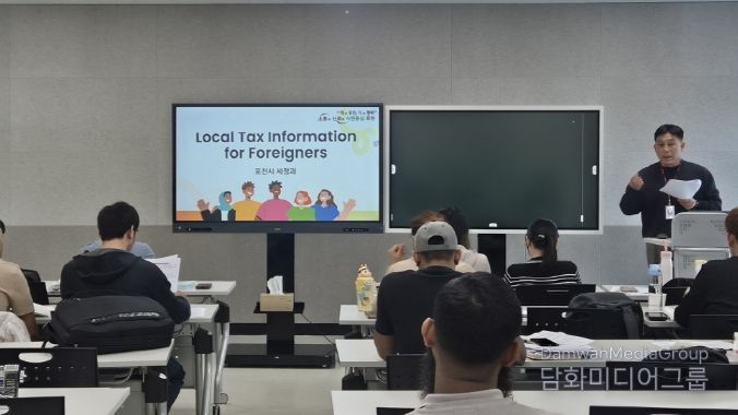 이날 교육에서는 세정과 윤효섭 세정팀장이 강사로 참여해 주민세, 자동차세 등 취득세와 자동차세 등 주요 세목에 대한 안내부터 효율적인 납부 방법, 가산세 부과 및 번호판 영치 등 체납 시 발생할 수 있는 불이익까지 상세히 설명하며 외국인 주민들이 실생활에서 꼭 알아야 할 지방세 관련 정보를 전달했다.