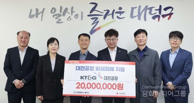 대덕구 관계자는 “어려운 상황에 놓인 우리 지역의 이웃을 위해 큰 나눔을 실천해 주신 KT&G 대전공장에 깊이 감사드린다”며 “소중한 성금이 피해 주민들에게 실질적인 도움이 될 수 있도록 최선을 다하겠다”고 말했다.