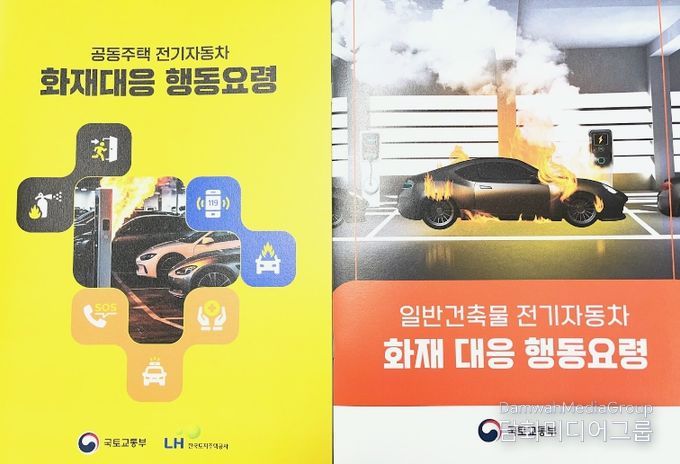 책자는 국토교통부와 한국토지주택공사의 전기자동차 화재 대응 행동 요령 및 화재 안전 지침서(매뉴얼)를 기반으로 구성됐으며, △충전 중 화재 발생 시 대응요령 △시설 관리자 및 입주민 행동수칙 △신속한 신고 및 대피 요령 △충전구역 지정 시 고려사항 등을 담았다.