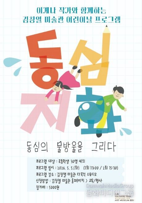 시민행정신문 기자 | 제주도립 김창열미술관이 어린이날을 맞아 5월 5일 초등학교 학생을 대상으로 특별 프로그램 ‘동심지화(童心之畵), 동심의 물방울을 그리다’의 참가자 30명을 모집한다.