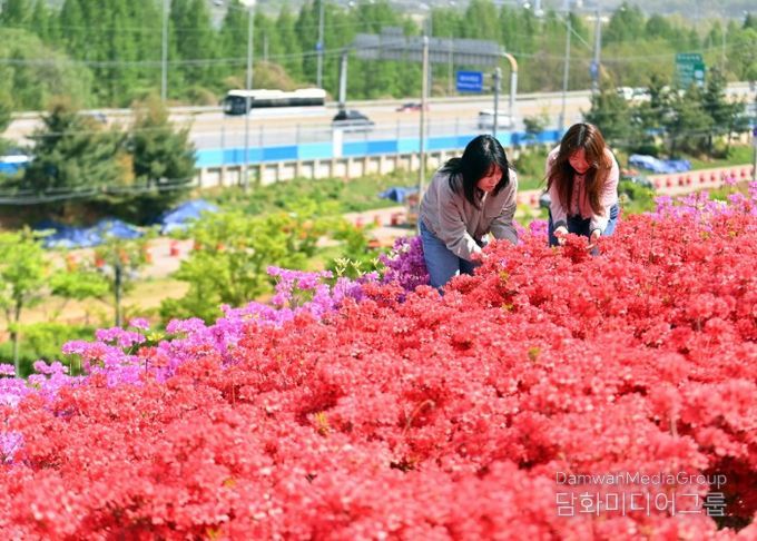 약 1만 1천㎡ 부지를 가득 채운 영산홍은 잎보다 꽃이 먼저 피어나는 특성 덕에 빈틈없는 붉은 빛을 선사한다. 꽃길 어디서든 카메라만 대면 ‘인생 사진’을 건질 수 있다는 입소문이 퍼지면서 인스타그램과 블로그 등 사회관계망서비스(SNS)에서도 반응이 뜨겁다.