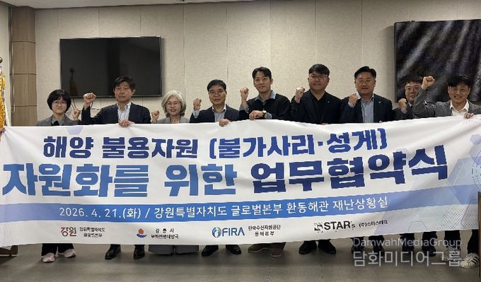 시민행정신문 강갑수 기자 | 강릉시는 21일 강원특별자치도청 글로벌본부 환동해관에서 강원특별자치도, 한국수산자원공단 동해본부, ㈜스타스테크와 함께 ‘해양 불용자원 자원화를 위한 업무협약’을 체결했다고 밝혔다.