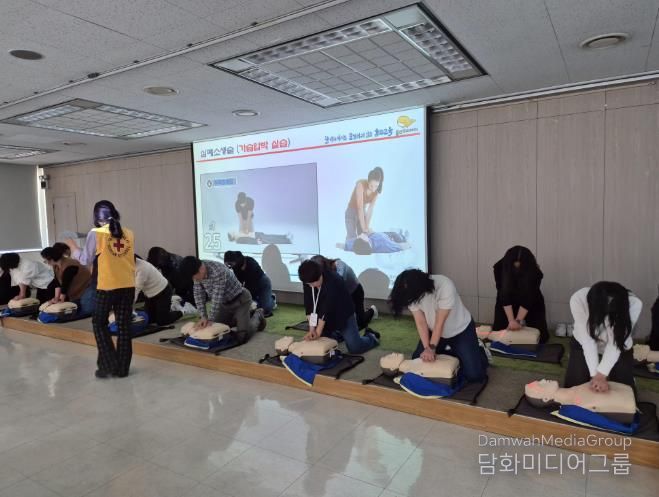 대한적십자사 응급처치 강사 장정권 강사가 참여해 실제 현장에서 발생할 수 있는 상황을 중심으로 교육했다.