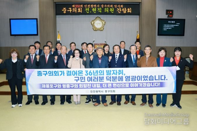 시민행정신문 조규호 기자 | 인천 중구의회는 21일, 제332회 임시회 개회를 맞아 역대 의원들을 초청하여 36년간의 의정 성과를 되돌아보고 향후 행정체제 개편에 대비한 고견을 청취하는 간담회를 개최했다.