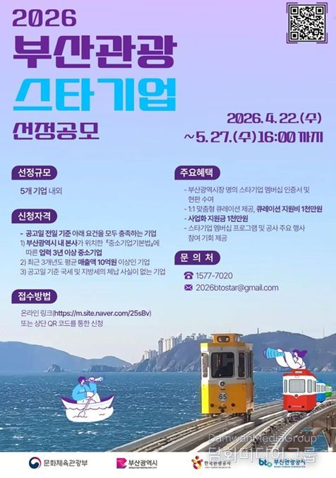 나윤빈 시 관광마이스국장은 “이번 공모를 통해 부산 관광의 질적 성장을 견인할 핵심 파트너를 발굴하고자 한다”라며, “스타기업이 개별적 성공에서 나아가, 후배 기업들을 이끄는 지역 관광산업의 조력자이자 대한민국을 대표하는 브랜드로 거듭날 수 있도록 적극 지원하겠다”라고 전했다.