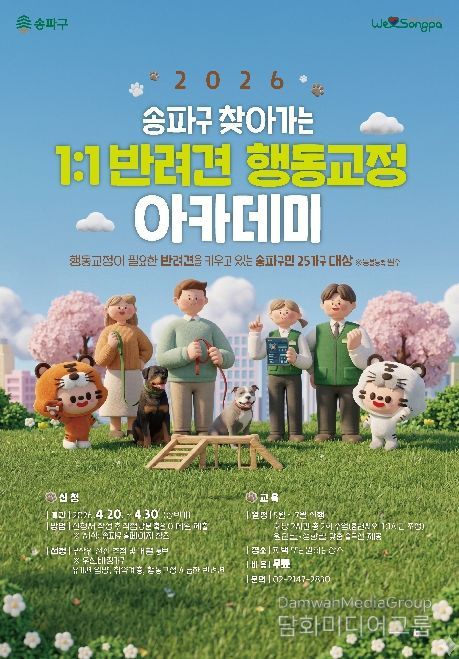 송파구 관계자는 “반려견 문제행동은 전문가의 손길이 닿으면 강아지도, 보호자도, 이웃도 모두 편안해진다”라며 “성숙한 반려 문화를 만드는 데 송파구가 든든한 동반자가 되겠다”라고 전했다.