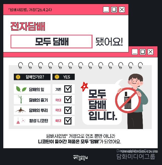 시민행정신문 강갑수 기자 | 서울 강서구는 오는 24일부터 시행되는 담배사업법 개정에 따라 전자담배를 포함한 모든 담배 제품에 대한 단속을 강화한다고 밝혔다.