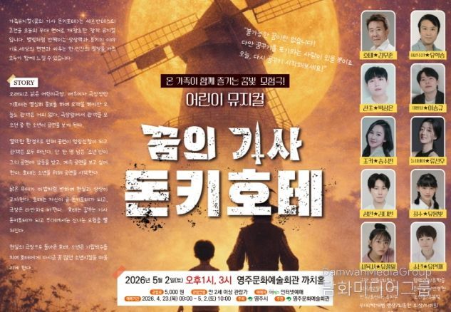 시민행정신문 강갑수 기자 | 영주시는 오는 5월 2일 오후 1시와 오후 3시, 두 차례에 걸쳐 영주문화예술회관 까치홀에서 어린이 뮤지컬 ‘돈키호테’를 선보인다.