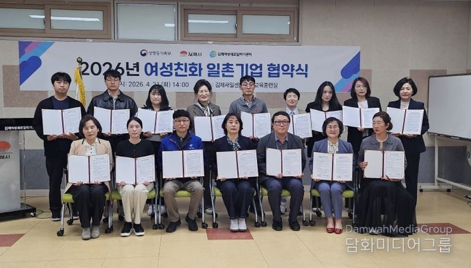 시민행정신문 강갑수 기자 | 김제시여성새로일하기센터는 지난 21일 새일센터 직업훈련실에서여성 취업자의 고용 유지 지원 등을 위한 지역 업체와의 협력망 구축을 위해'2026년 여성친화 일촌기업 협약식'을 개최했다고 밝혔다.