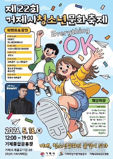시민행정신문 기자 | 거제시는 오는 2026년 5월 16일 12:00~19:00, 거제종합운동장(우천 시 거제시체육관)에서 제22회 거제시청소년문화축제 “Everything OK”를 개최한다.