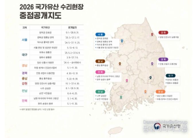 시민행정신문 이존영 기자 | 국가유산청은 국가유산 수리과정에 대한 국민의 이해를 높이고, 현장 체험 기회를 확대하기 위해 2026년 전국 주요 국가유산 수리현장 15개소를 선정하여 올해 12월까지 일반에 공개한다.
