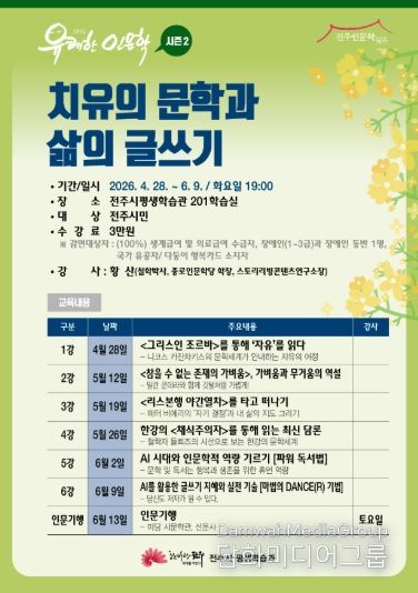 시민행정신문 강갑수 기자 | 전주시가 시민들이 인문학을 통해 행복한 삶의 지혜를 배울 수 있도록 생활 속 인문학 프로그램을 운영한다.