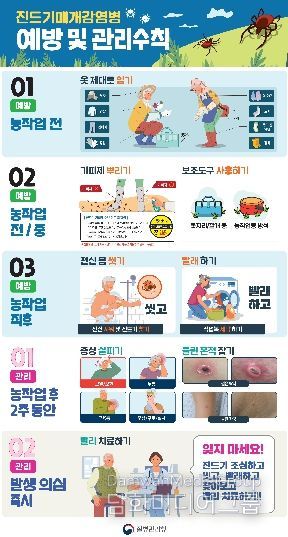 질병관리청 통계에 따르면 국내에서는 매년 쯔쯔가무시증 약 5천~6천명, 중증열성혈소판감소증후군(SFTS) 약 200명 내외 등 진드기 매개 감염병 환자가 지속적으로 발생하고 있다. 감염 시 발열·두통·근육통·소화기 증상 등이 나타날 수 있으며, 중증으로 진행될 가능성도 있어 예방이 무엇보다 중요하다.