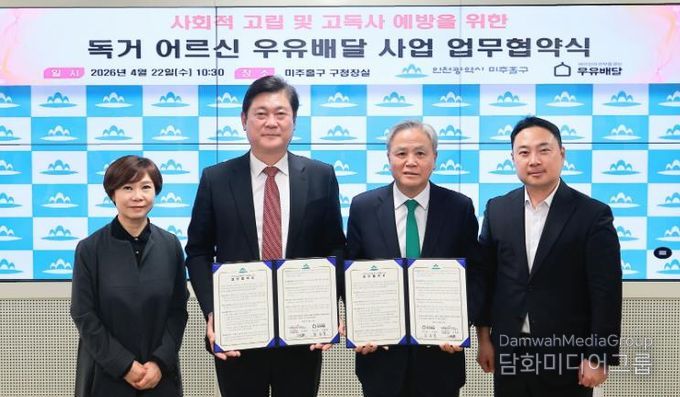 시민행정신문 강갑수 기자 | 인천 미추홀구는 22일 (사)어르신의 안부를 묻는 우유배달과 독거 어르신의 건강한 생활 지원 및 고독사 예방을 위한 ‘어르신의 안부를 묻는 우유배달 사업’ 업무협약을 체결했다.