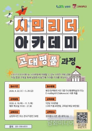 시민행정신문 기자 | 남양주시는 시민의 자치 역량 강화를 위해 ‘남양주시 시민리더 아카데미’ 제20기 수강생을 모집한다고 22일 밝혔다.