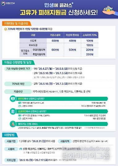 한편 장재혁 합천군수 권한대행은 “고유가 피해지원금 사용기한(2026.8.31.까지)과 경남도민 생활지원금 사용기한(2026.7.31.까지)이 상이함에 따라 군민들이 사용에 혼선이 없도록 당부드린다”며 “모든 군민이 빠짐없이 지원을 받을 수 있도록 업무 추진에 만전을 기하겠다”고 밝혔다.