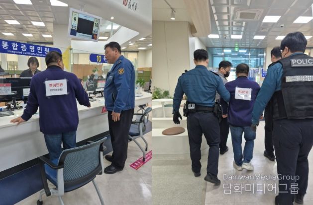 훈련은 폭행 상황을 가정해 ▲비상벨 작동 ▲방문객 대피 ▲피해 공무원 보호 ▲경찰 출동 및 퇴거 등 단계별 매뉴얼에 맞춰 실전처럼 진행됐다.
