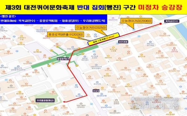 시민행정신문 강갑수 기자 | 대전시는 4월 25일 원도심 일대에서 열리는 ‘대전퀴어문화축제’ 관련해 찬·반 집회와 도로 행진에 따라 교통 혼잡 완화와 시민 안전 확보를 위해 시내버스 일부 구간에 대해 승강장 무정차 및 서행 운행을 시행한다.