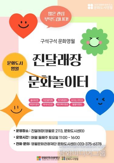 시민행정신문 강갑수 기자 | (재)영월문화관광재단은 오는 8월 30일까지 ‘진달래장 문화놀이터’ 참여자를 수시 모집한다고 밝혔다.