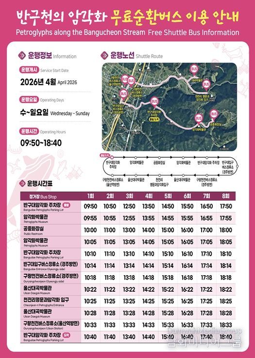 운행 시간표는 암각화박물관 등 주요 거점 안내 표지판과 울산시 공식 누리소통망(SNS)을 통해 확인할 수 있다.