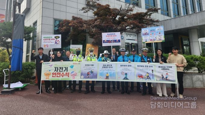 특히 하교 시간대 학생 유동인구가 많은 지역에서 안전모 착용, 교통법규 준수, 보행자 배려 등 자전거 이용 수칙을 안내하고 홍보물을 배부하며 교통안전 의식 제고에 나섰다.