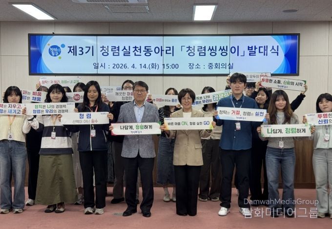 제3기 '청렴씽씽이'는 청렴 행정을 선도하기 위해 자발적으로 모인 MZ세대 직원 19명으로 구성됐으며, 앞으로 청렴 관련 아이디어 제안, 직원 의견 수렴, 참여형 청렴 프로그램 운영 등 다양한 활동을 통해 조직 내 청렴 실천 분위기 조성에 앞장설 계획이다.