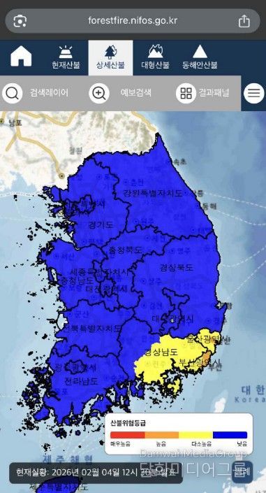 시민행정신문 이존영 기자 | 산림청 국립산림과학원은 2월부터 사용자가 자신의 현재 위치를 기반으로 산불위험 정보를 실시간으로 확인할 수 있는 '국가산불위험예보시스템'을 모바일 반응형으로 전환하여 제공하고 있다고 밝혔다.