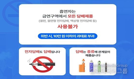 이번 개정의 주요 내용은 담배의 정의가 기존 연초에서 니코틴을 원료로 한 제품까지 확대된 것으로, 전자·액상형 담배 등도 포함돼 금연구역 내 사용이 금지된다. 위반 시 과태료 10만 원이 부과된다.