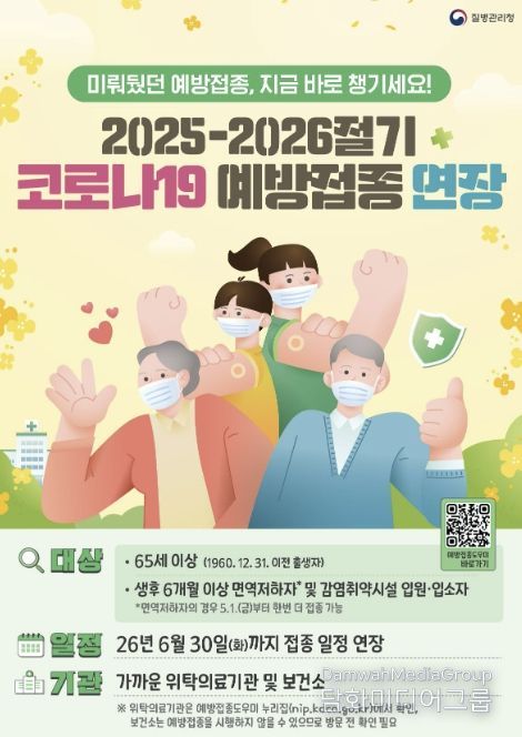 접종 대상은 2025~2026절기 코로나19 백신을 아직 접종하지 않은 △65세 이상 어르신 △감염취약시설 입원·입소자 △면역저하자 등이다.