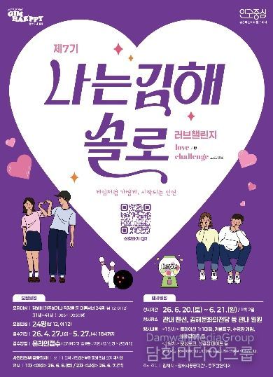 시민행정신문 강갑수 기자 | 김해시는 오는 6월 20일부터 21일까지 1박 2일 일정으로 관내 펜션과 김해문화의전당 등에서 진행하는‘제7기 나는 김해솔로-러브챌린지’참가자 24명(남·여 각 12명)을 모집한다고 24일 밝혔다.