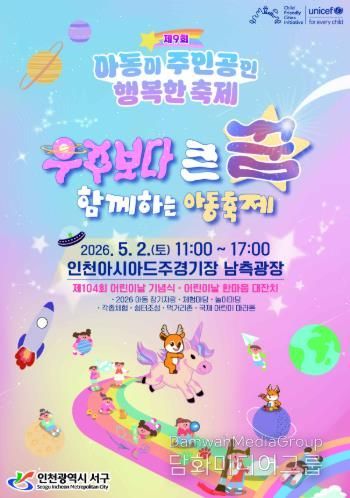 시민행정신문 강갑수 기자 | 인천 서구는 제104회 어린이날을 맞이하여 오는 5월 2일 오전 11시부터 오후5시까지 인천아시아드주경기장 남측광장에서 제9회 아동이 주인공인 행복한 축제를 개최한다.