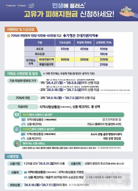 군 관계자는 “가평군은 인구감소 우대 지역으로 분류돼 지원 규모가 큰 만큼, 대상 군민들이 한 분도 빠짐없이 혜택을 받을 수 있도록 신청 안내와 현장 대응에 만전을 기하겠다”고 말했다.