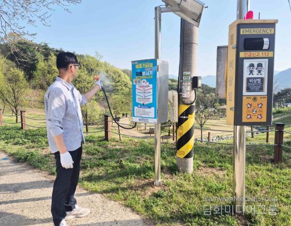 주요 점검 내용은 자동분사기 작동 여부와 분사 압력 확인, 태양광 패널 및 배터리 충전 효율 점검 등이다. 점검 결과, 기피제가 부족한 5개소는 현장에서 즉시 약품을 보충했으며, 기기 외관 청소와 주변 장애물 제거를 병행해 이용 편의를 높였다.