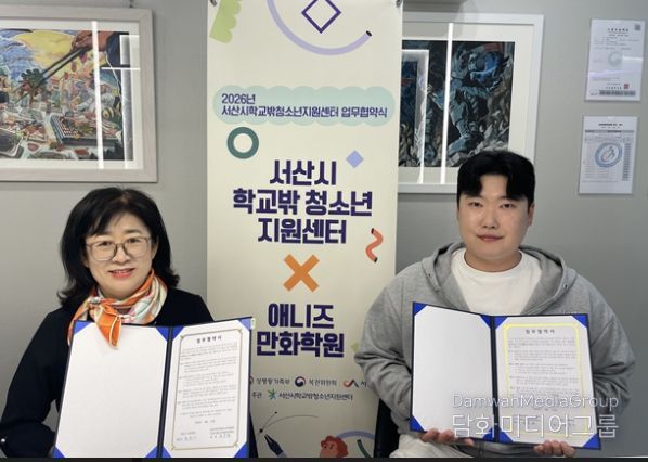 시민행정신문 기자 | 충청남도 서산시학교밖청소년지원센터는 4월 23일, 애니즈 만화학원과 학교 밖 청소년의 자기계발 및 진로 탐색 지원을 위한 업무 협약(MOU)을 체결했다.